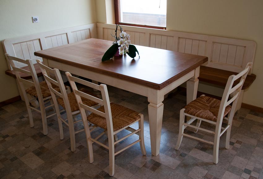 Brez masivne jedilne mize si težko predstavljamo celoto v kombinaciji z masivno kuhinjo ali kmečko sobo. Narejene so po meri iz naravnega lesa. Dimenzija in oblika sta prilagojeni prostoru in zaključujeta prostor kot celoto. V jedilnici, ki je večjih dimenzij miza zapolni prostor in s svojo masivno obliko da prostoru poseben čar.